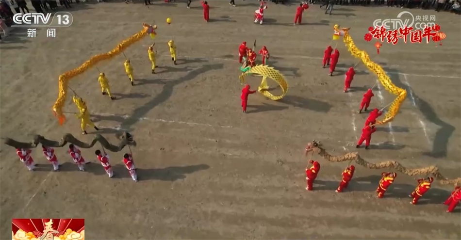 在射洪洋溪鎮(zhèn)水洲壩村,陣陣鼓樂聲中,當(dāng)?shù)匚椠垈鞒姓呶柚鴥蓷l草龍?jiān)趶V場(chǎng)內(nèi)來回穿梭,時(shí)而騰空疾飛,時(shí)而逶迤蛇行,吸引眾多游客駐足觀看。