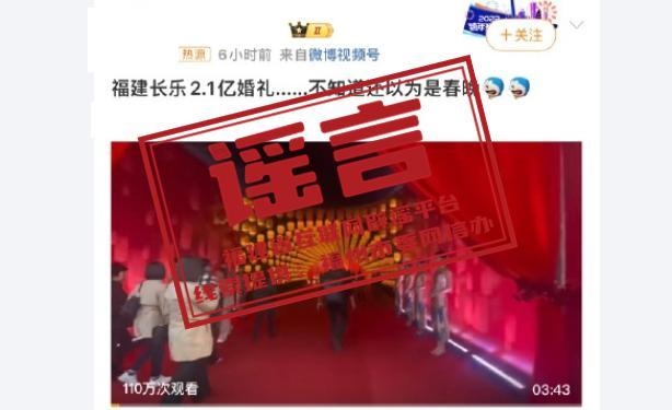 ·福建省互聯(lián)網(wǎng)辟謠平臺:“董事長之子婚宴斥資2.1億”嚴(yán)重失實(shí),相關(guān)賬號禁言30日。