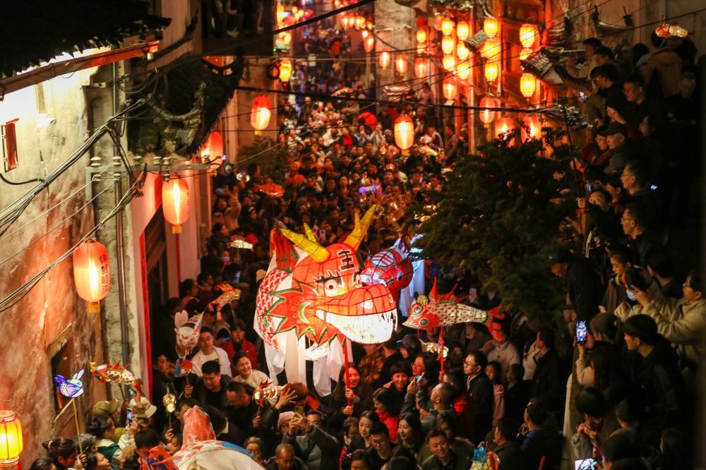2024年2月13日,安徽黃山,歙縣北岸鎮(zhèn)千年古村瞻淇村熱鬧非凡,一年一度的嬉魚燈民俗活動上演。瞻淇村嬉魚燈是一項(xiàng)傳統(tǒng)的民俗活動,歷史悠久,相傳起源于宋朝,延續(xù)至今已有800多年的歷史。