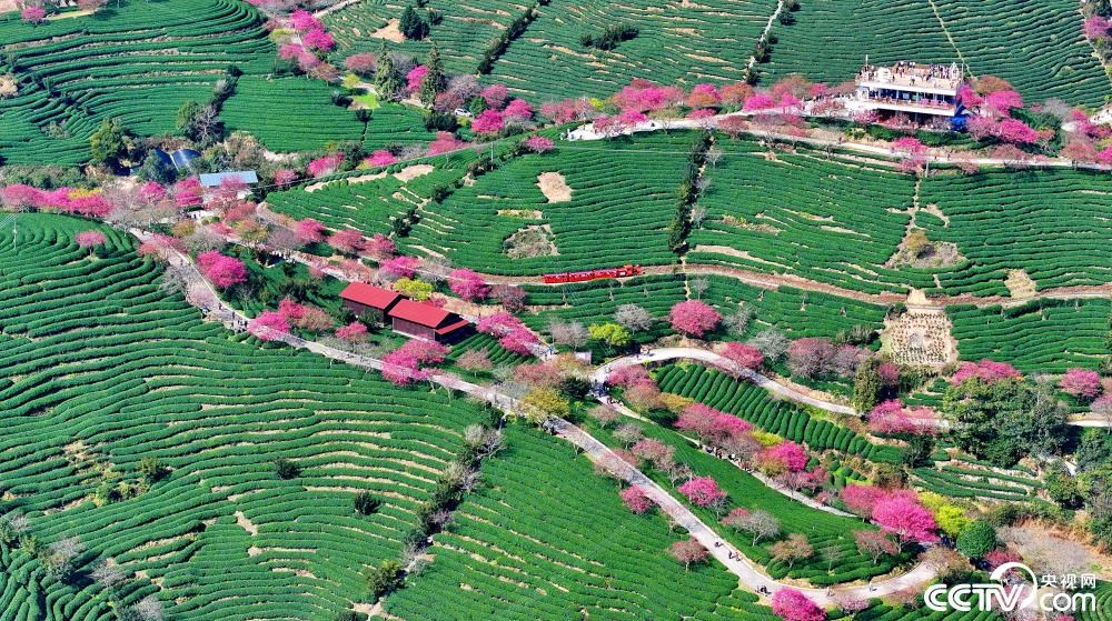 ??2024年2月13日,福建省龍巖市漳平市永福鎮(zhèn)后孟村,茶園櫻花綻放,構(gòu)成一幅春意盎然的多彩畫卷。?
