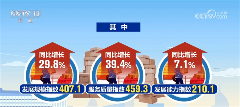 央視網(wǎng)消息:3月15日,國家郵政局發(fā)布2024年1—2月中國快遞發(fā)展指數(shù)報告,1—2月中國快遞發(fā)展指數(shù)同比提升26.7%??爝f發(fā)展指數(shù)評價采用指數(shù)評價方法,以2016年3月為基期,基期值設(shè)定為100。整個指標(biāo)體系包括發(fā)展規(guī)模、服務(wù)質(zhì)量、發(fā)展能力和發(fā)展趨勢等4個一級指標(biāo)和11個二級指標(biāo)。指數(shù)反映出,今年1—2月,快遞業(yè)實(shí)現(xiàn)良好開局,市場規(guī)模快速增長。