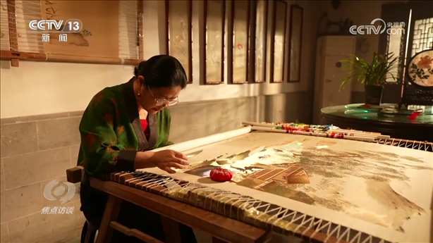 盧建英:“當(dāng)時(shí)我在繡一幅《桃花太平鳥圖》,習(xí)近平總書記走到了我的繃架前。他說(shuō)你好,很親切,很和藹,看得非常仔細(xì)。他說(shuō)中華文化的傳承力有多強(qiáng),通過(guò)這個(gè)蘇繡可以看出來(lái),像這樣的功夫充分體現(xiàn)出中國(guó)人的韌性、耐心和定力,這是中華民族精神的一部分,能得到總書記的認(rèn)可,真的是倍感榮耀?!?/p>