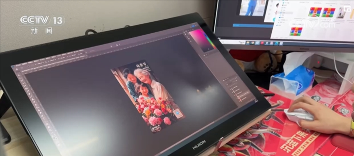 AI畫(huà)師鄧博正在設(shè)計(jì)一幅母親節(jié)的主題海報(bào)。如果使用傳統(tǒng)手繪加圖片編輯方式,這樣一張海報(bào)鄧博至少要做上兩到三天。不過(guò)現(xiàn)在,使用AI進(jìn)行輔助生成,從接到需求到交付出多張不同風(fēng)格的高質(zhì)量海報(bào),鄧博只用了不到10分鐘的時(shí)間。