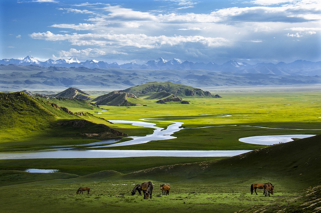 位于天山南麓的巴音布魯克既是中國僅次于內(nèi)蒙古鄂爾多斯的第二大草原,又是中國最大的高山草原,巴音布魯克草原共有大小13處泉水,7個(gè)湖泊,以及20條河流。蜿蜒在草原上的開都河素有“九曲十八彎”的美稱。
