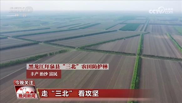 位于黑龍江的“三北”農(nóng)田防護(hù)林里,樹林呵護(hù)著田塊,種糧、治沙兩不誤。