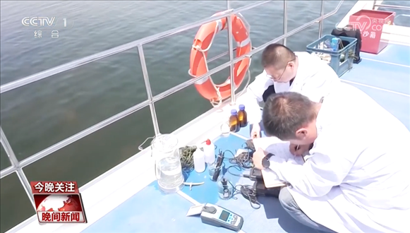 現(xiàn)場水樣監(jiān)測和分析顯示,水溫是32℃,PH是8.8,電導(dǎo)率是3.03,內(nèi)蒙古自治區(qū)環(huán)境監(jiān)測總站巴彥淖爾分站副站長賈國慶介紹,PH和溶解氧都在合理值。