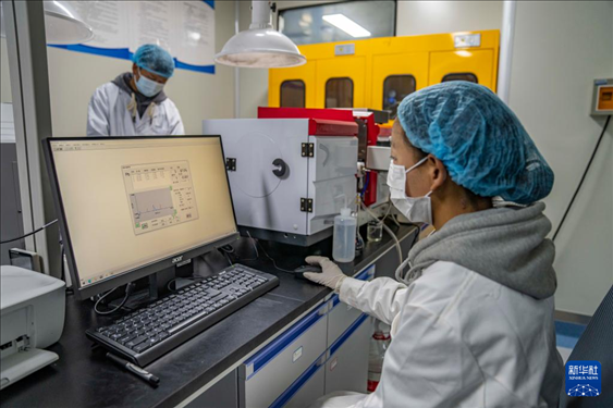 ?在聶榮縣嘎確生態(tài)畜牧業(yè)發(fā)展有限責(zé)任公司,檢驗(yàn)員達(dá)娃卓瑪在檢測奶制品(5月13日攝)。新華社記者 孫非 攝