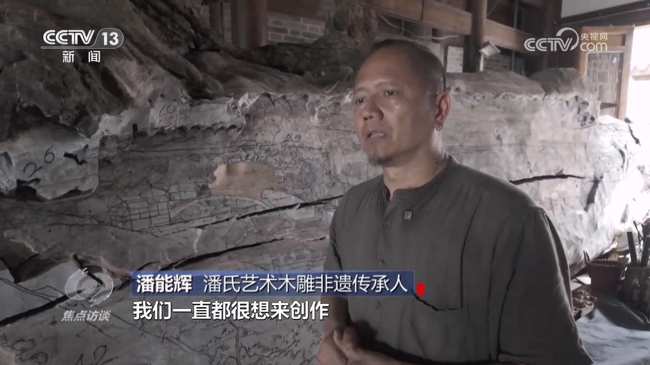 潘氏藝術(shù)木雕非遺傳承人潘能輝:“我們一直都很想創(chuàng)作完全屬于本土地域特色的作品,如何把常德文化傳承下去,正好河街也是根基所在。”