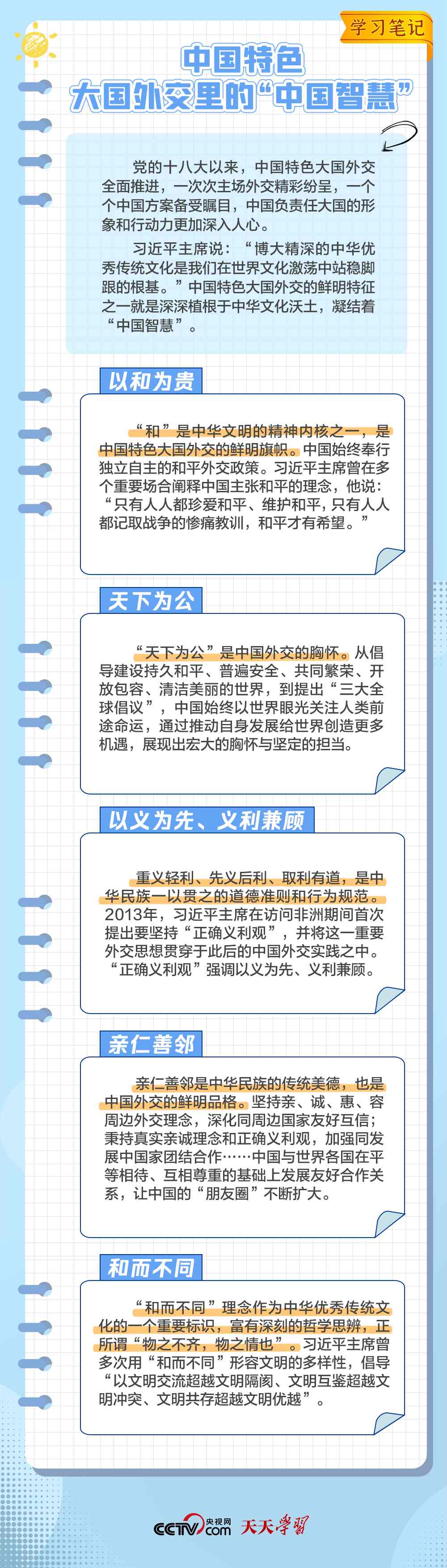 10年來,面對(duì)風(fēng)云變幻的國際形勢,中國特色大國外交扎實(shí)推進(jìn),形成了全方位、多層次、立體化的外交布局,為我國高質(zhì)量發(fā)展?fàn)I造了良好外部環(huán)境。中國特色大國外交提出10周年之際,《學(xué)習(xí)筆記》特梳理其內(nèi)涵要義,與您一同感悟其中蘊(yùn)含的“中國智慧”。
