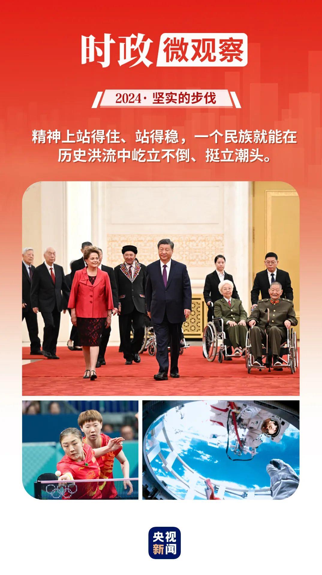 回望2024年,黨的二十屆三中全會(huì)標(biāo)記下改革開(kāi)放進(jìn)程又一重要?dú)v史性時(shí)刻;我們熱烈慶祝中華人民共和國(guó)成立75周年 、澳門回歸祖國(guó)25周年,匯聚砥礪前行的強(qiáng)大力量;中國(guó)體育代表團(tuán)取得夏季奧運(yùn)會(huì)境外參賽最好成績(jī),生動(dòng)詮釋了新時(shí)代中國(guó)精神;太空遨游、智能迭代、長(zhǎng)橋飛渡、巨輪啟航,中國(guó)的創(chuàng)新動(dòng)力、發(fā)展活力勃發(fā)奔涌……中國(guó)人民更加自信自強(qiáng),奮斗精神更加昂揚(yáng)。