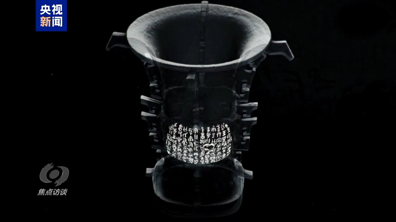 寶雞青銅器博物院院長(zhǎng) 寧亞瑩:我非常喜歡站在這個(gè)地方看何尊,通過(guò)反射可以看到何尊底部的銘文。觀(guān)眾有這個(gè)要求,就想一睹真跡,我們就得把這個(gè)竭力呈現(xiàn)出來(lái)。