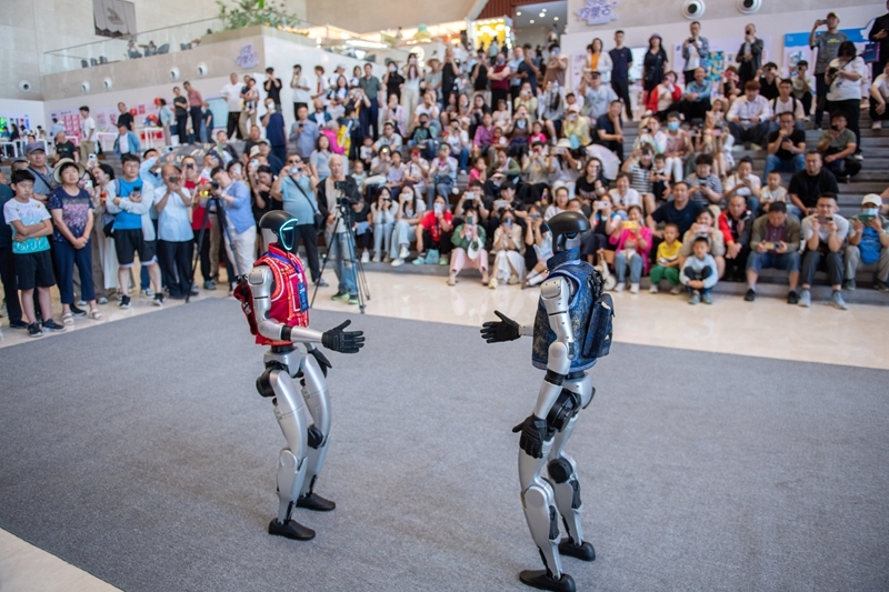 6月20日,智能導(dǎo)覽機(jī)器人在內(nèi)蒙古博物院表演節(jié)目。