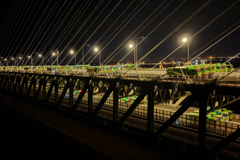 6月20日晚,常泰長(zhǎng)江大橋主航道橋進(jìn)行4400噸荷載試驗(yàn),110輛重型卡車駛上主航道橋面,啟動(dòng)靜態(tài)荷載試驗(yàn)。自6月16日起,常泰長(zhǎng)江大橋開(kāi)啟為期一周的荷載試驗(yàn),對(duì)大橋承載力和安全性進(jìn)行全面評(píng)估。