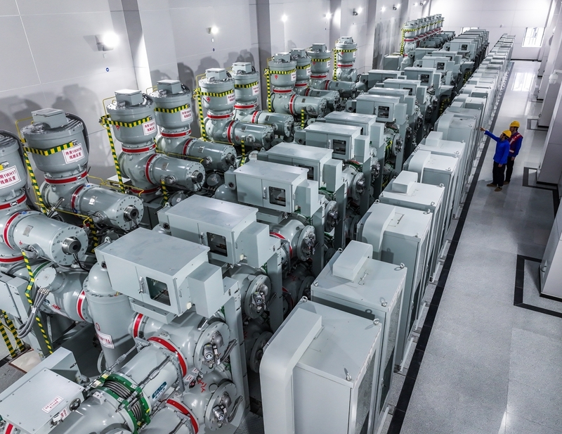 6月24日,在舟山望海(金塘)220千伏輸變電工程的變電站GIS室內(nèi),工作人員進(jìn)行投運(yùn)前的巡檢(無人機(jī)照片)。