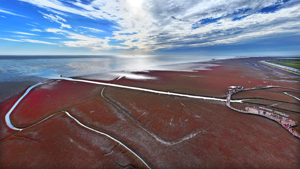遼寧海濱,北緯39度的海風(fēng)掠過浮光躍動(dòng)的海灣,丹頂鶴在紅海灘間蹁躚起舞;海岸線上,執(zhí)法船在巡航,電子眼守護(hù)著潔凈的沙灘;沙灘上,志愿者拾起漂浮的塑料瓶……交織成一幅動(dòng)人的生態(tài)畫卷。