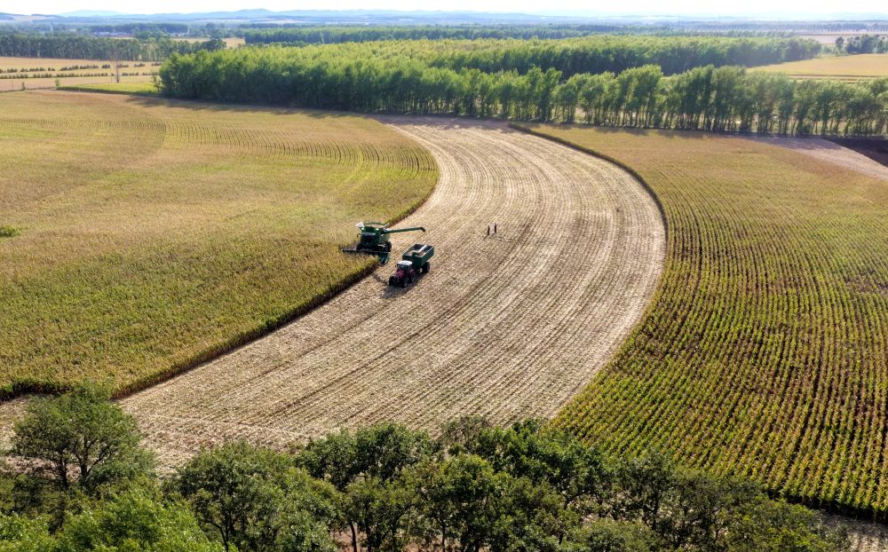 秋高云淡,黑龍江省七臺河市勃利縣的玉米地里一派繁忙景象。大型收割機(jī)往來穿梭,飽滿的玉米棒被自動精準(zhǔn)收入機(jī)身。脫粒后,金燦燦的玉米粒源源不斷涌入隨行的運糧車。