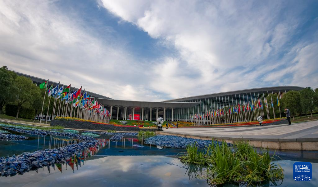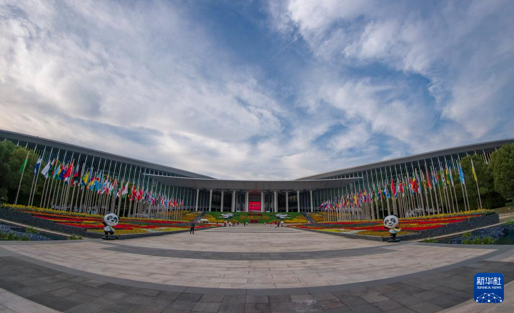 這是裝飾一新的國家會(huì)展中心(上海)南廣場(11月3日攝)。