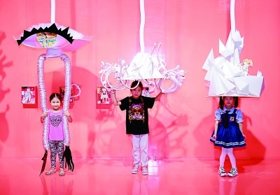 中華世紀(jì)壇展廳內(nèi),小朋友們正與裝置藝術(shù)作品進(jìn)行互動(dòng)。資料圖片