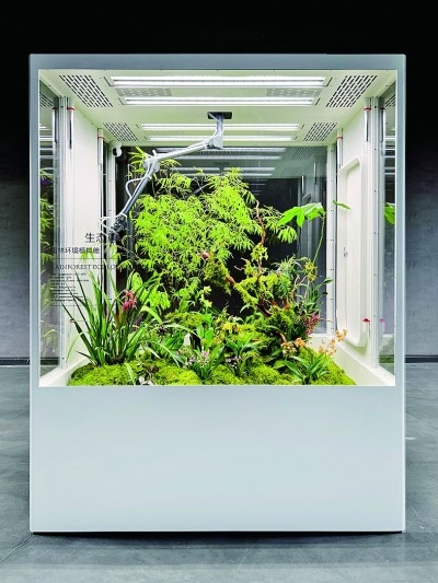 展廳一側(cè),三個(gè)立方體環(huán)境模擬艙并排放置,分別在近7立方米的空間內(nèi)模擬了雨林、海島、沙漠三種生態(tài)環(huán)境,引來許多觀眾圍觀?!霸诟邩橇至⒌亩际?,很多人都向往擁有一方屬于自己的自然天地。為人們?cè)谑覂?nèi)打造一片‘原始森林’便成了我們的使命。”品牌創(chuàng)始人李軍介紹,設(shè)計(jì)過程中,團(tuán)隊(duì)遇到的一大的難點(diǎn)就是在保證室內(nèi)環(huán)境舒適度的同時(shí),讓各類植物健康生長(zhǎng)?!巴ㄟ^設(shè)計(jì)師的努力,我們首次將人造太陽光源、溫濕度控制、空氣流通、智能微噴等系統(tǒng)整合于室內(nèi)種植模擬環(huán)境中,實(shí)現(xiàn)了室內(nèi)種植智能化、自動(dòng)化、現(xiàn)代化?!崩钴姳硎?,做設(shè)計(jì)亦要遵循自然法則,“人與自然和諧共生”是團(tuán)隊(duì)始終不變的設(shè)計(jì)宗旨。