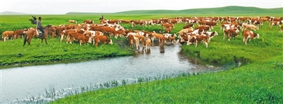 “我國肉牛水平與世界發(fā)達(dá)國家相比較,落后的最主要原因是缺乏規(guī)?;咂焚|(zhì)種質(zhì)母牛群。2016年,在自治區(qū)農(nóng)牧廳和當(dāng)?shù)攸h委、政府的大力支持下,內(nèi)蒙古賀斯格綠色產(chǎn)業(yè)進(jìn)出口有限公司從國外引進(jìn)第一批3500多頭純種種質(zhì)母牛,通過人工授精進(jìn)行規(guī)?;a(chǎn)?,F(xiàn)在每年能夠生產(chǎn)出來5000-6000頭高品質(zhì)母牛種質(zhì)群體,并在此基礎(chǔ)上,加強選育,培育更高品質(zhì)的種牛?!焙舾窦請D告訴記者。