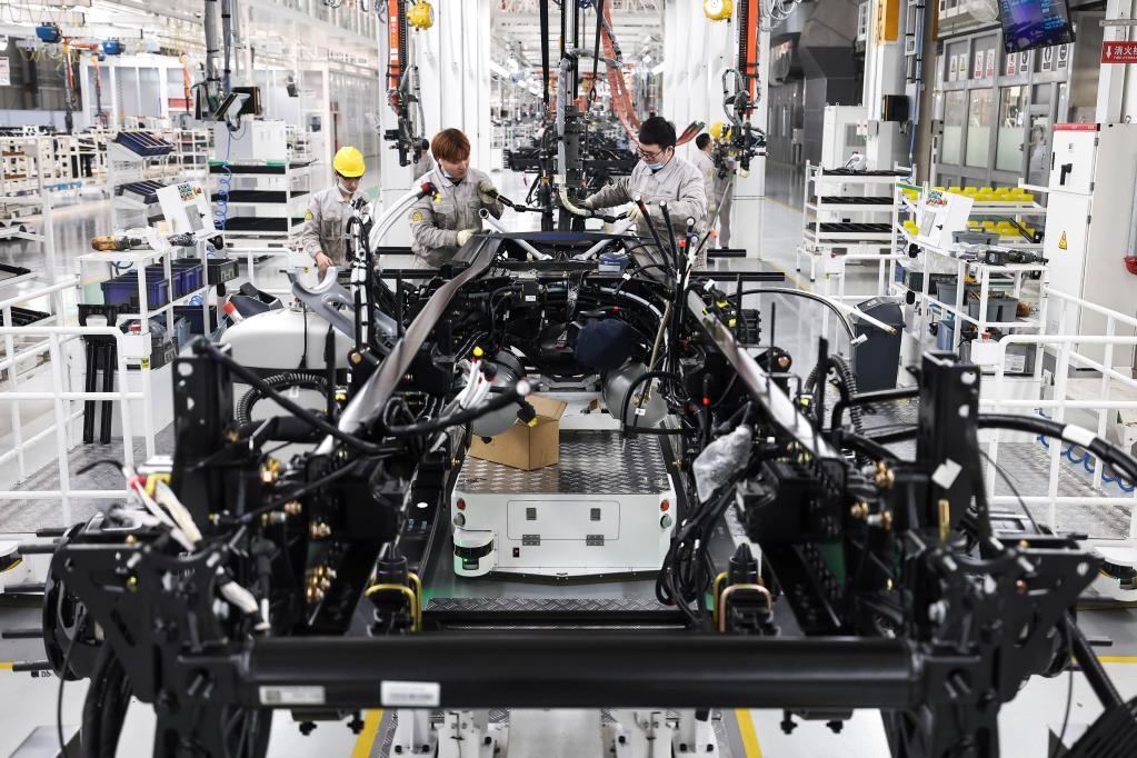 3月30日,工作人員在位于吉林長(zhǎng)春的一汽解放J7智能工廠內(nèi)進(jìn)行整車(chē)裝配作業(yè)。新華社記者 許暢 攝