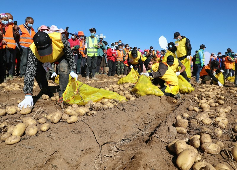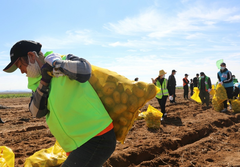 9月17日,四子王旗在大黑河鄉(xiāng)中加農業(yè)豐收地農場舉辦了“神奇吧,土豆”農民豐收節(jié)。豐收節(jié)現(xiàn)場,四子王旗烏蘭牧騎進行了演出,內蒙古中加農業(yè)生物科技有限公司舉行了趣味農民運動會、“神奇土豆宴”等活動。