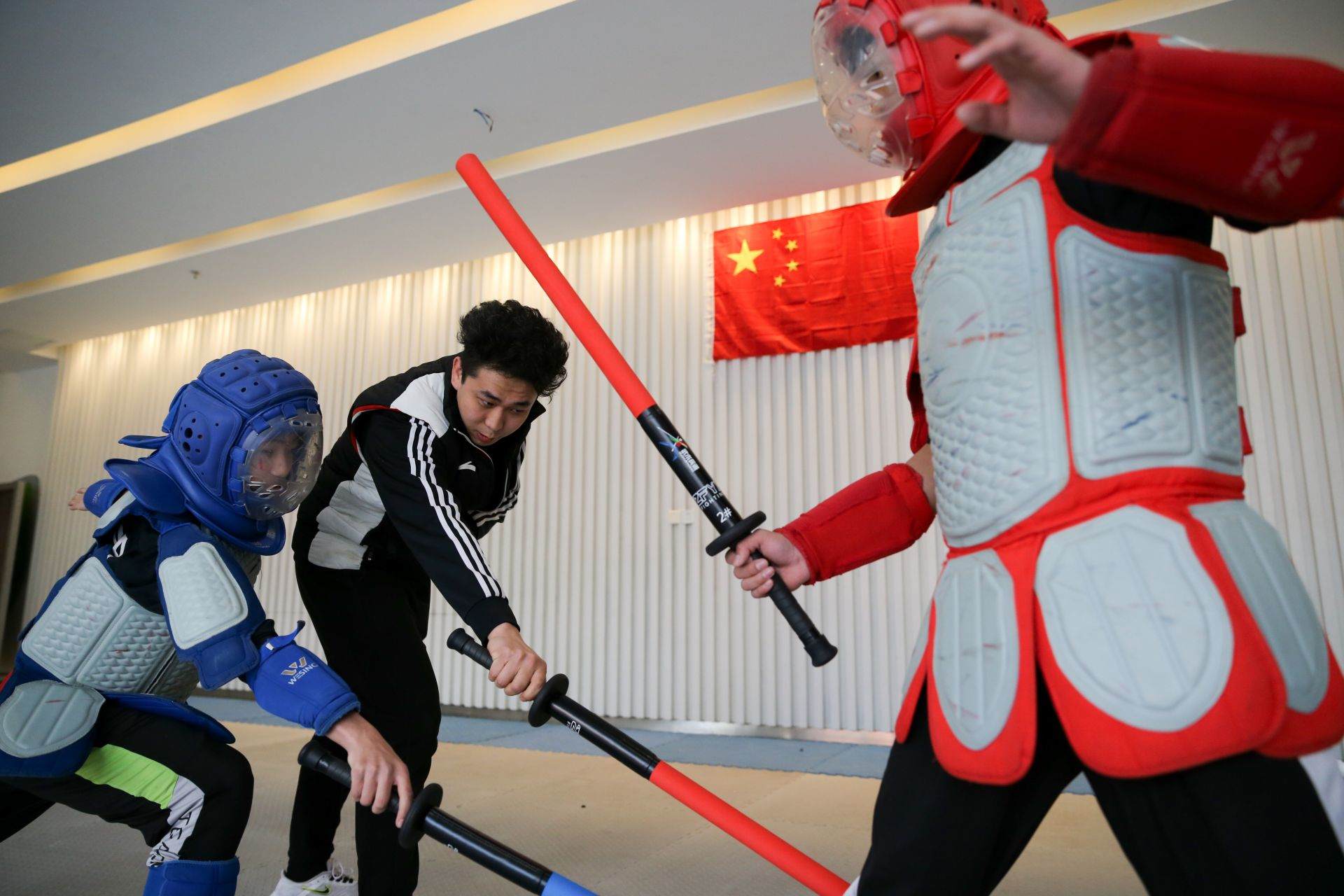據(jù)了解,2021年,國(guó)家體育總局武術(shù)管理中心推出了試行的武術(shù)兵道(短兵)競(jìng)賽規(guī)則,武術(shù)兵道作為與武術(shù)套路、武術(shù)散打并列的競(jìng)技武術(shù)重要內(nèi)容在全國(guó)普及推廣。同一年,剛剛從北京體育大學(xué)武術(shù)專業(yè)畢業(yè)的張宇來到呼和浩特,參與了內(nèi)蒙古第一批武術(shù)兵道運(yùn)動(dòng)員的選拔。“因?yàn)槭切马?xiàng)目,大部分隊(duì)員都是跨項(xiàng)選拔,主要關(guān)注他們的身體靈活性和臂展?!睆堄钫f。