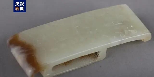 在M1的120余件出土器物中,還有制作精美的銅包金牌飾、金“五朱”等裝飾品,以及色澤瑩潤的玉帶鉤、玉劍璏(固定在劍鞘上,供穿系革帶以聯(lián)結(jié)腰間的器物)等玉器。不過,根據(jù)玉帶鉤、玉劍璏的樣式,考古工作者判斷,它們并非當時的器物,而是戰(zhàn)國時期的物件,有可能是墓主人的“傳家寶”。
