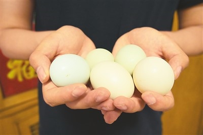 “你摸摸”,說著,盧大爺把雞蛋遞了過來。一摸,還熱乎著!盧大爺邊說,邊把雞蛋放進(jìn)鍋里煮?!斑@是剛下的綠皮雞蛋,是五彩蛋雞下的?!?/P>