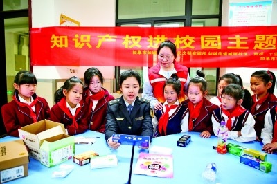 江蘇如皋市版權(quán)局聯(lián)合市場監(jiān)督等部門,圍繞商標(biāo)權(quán)、專利權(quán)等開展“知識(shí)產(chǎn)權(quán)進(jìn)校園”宣傳教育活動(dòng)。新華社發(fā)