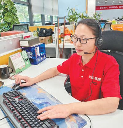 5月15日下午4點(diǎn)半,江蘇宿遷,許春香正面帶微笑與客戶溝通,她頭戴耳麥,眼睛緊盯屏幕,手指在鍵盤上靈活跳動(dòng)。