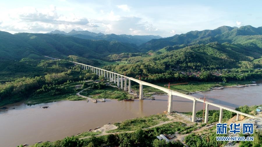 這是2020年7月15日拍攝的中老鐵路班納漢湄公河特大橋(無(wú)人機(jī)照片)。新華社發(fā)(中鐵八局供圖)