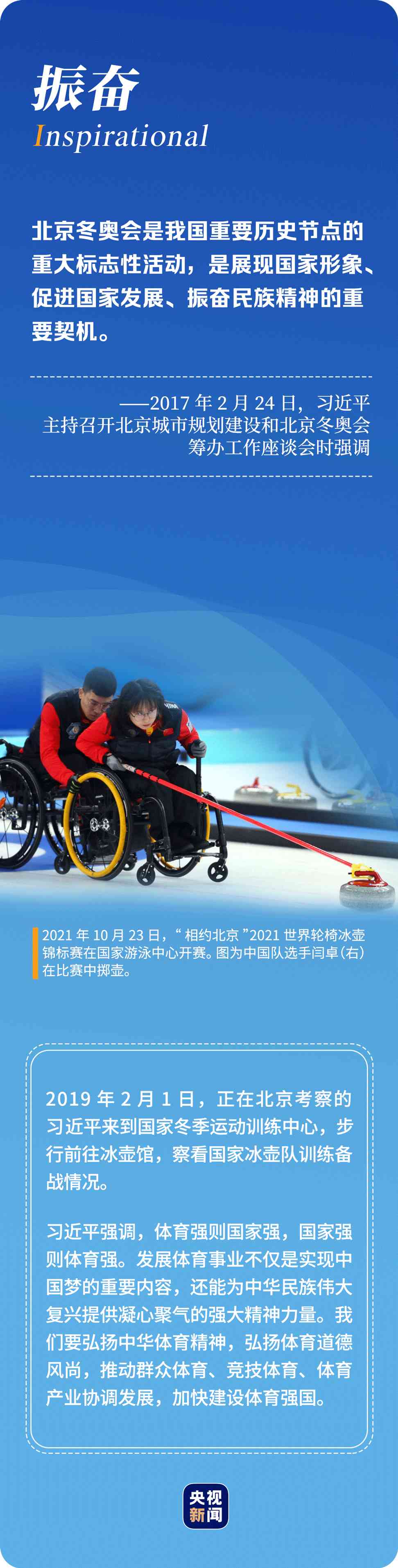 “辦好北京冬奧會(huì)、冬殘奧會(huì)是黨和國家的一件大事,是我們對(duì)國際社會(huì)的莊嚴(yán)承諾,做好北京冬奧會(huì)、冬殘奧會(huì)籌辦工作使命光榮、意義重大。”6年多來,習(xí)近平總書記始終惦記著冬奧會(huì)籌辦進(jìn)展,多次實(shí)地考察、主持召開重要會(huì)議部署推進(jìn)冬奧籌辦工作。