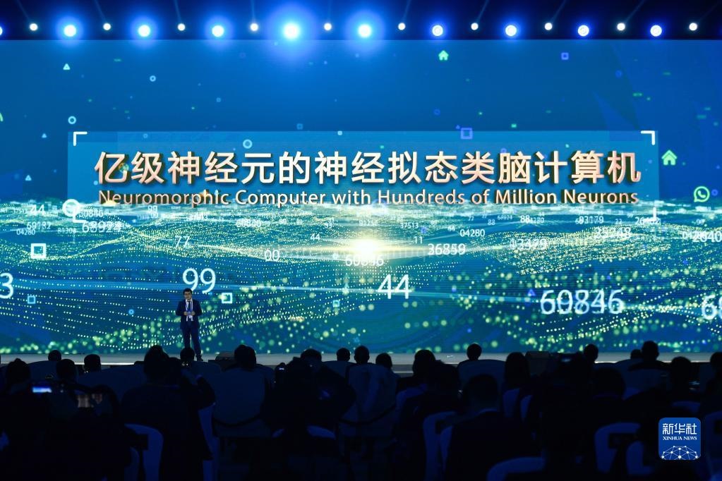 浙江大學(xué)、之江實(shí)驗(yàn)室代表在“世界互聯(lián)網(wǎng)領(lǐng)先科技成果發(fā)布”活動上介紹“億級神經(jīng)元的神經(jīng)擬態(tài)類腦計(jì)算機(jī)”(2020年11月23日攝)。新華社記者 黃宗治 攝