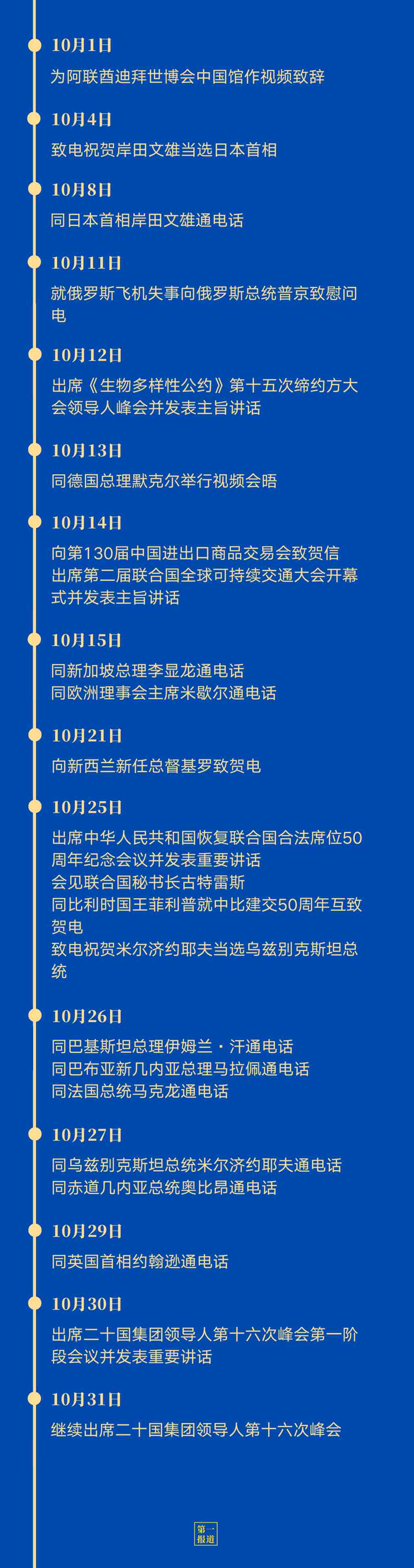 面對更多不確定性,尤需凝心聚力應(yīng)對共同挑戰(zhàn)。10月,中國元首外交活動頻密,內(nèi)容豐富——