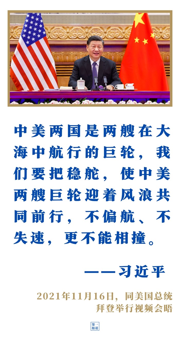 習近平主席同美國總統(tǒng)拜登舉行視頻會晤時,提出中美相互尊重、和平共處、合作共贏三點原則和應(yīng)當著力推動的四方面優(yōu)先事項,為中美關(guān)系的未來走向明確了基本框架。