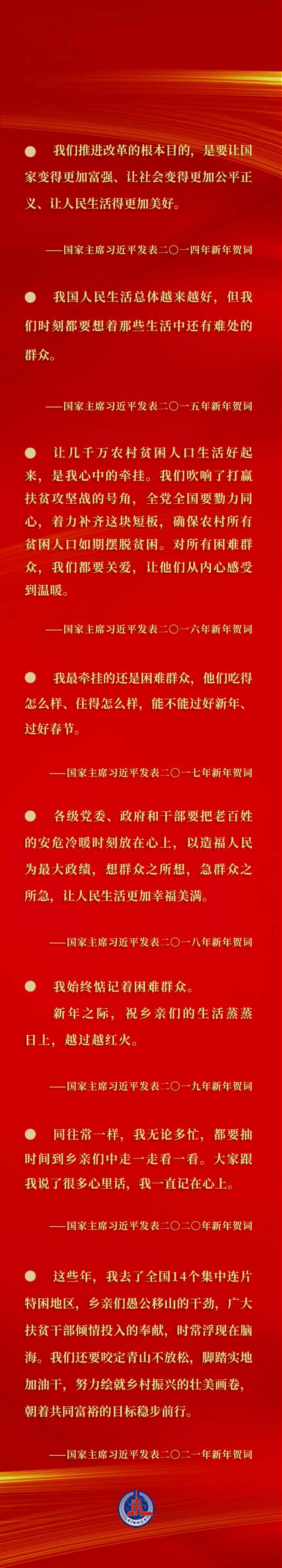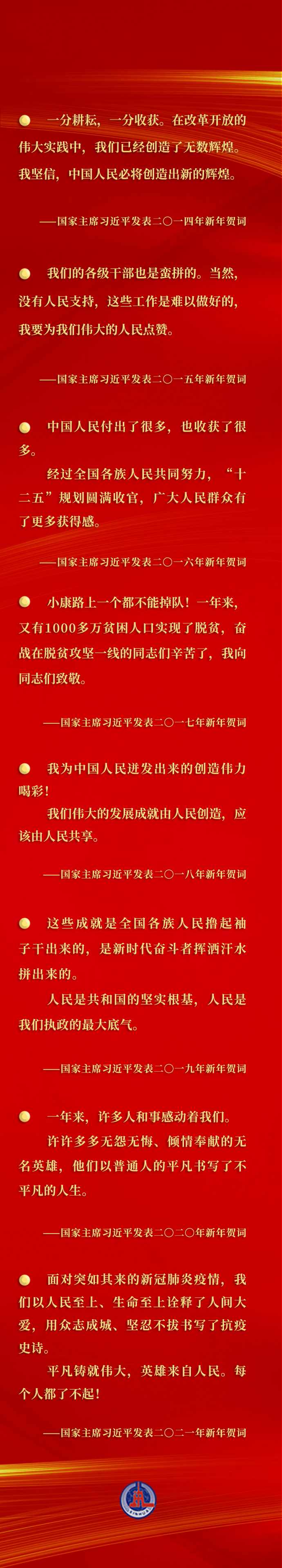 每年的新年賀詞,都在激勵(lì)我們乘勢(shì)而上、接續(xù)奮斗,匯聚激勵(lì)各族人民團(tuán)結(jié)一心、并肩奮斗的強(qiáng)大合力。