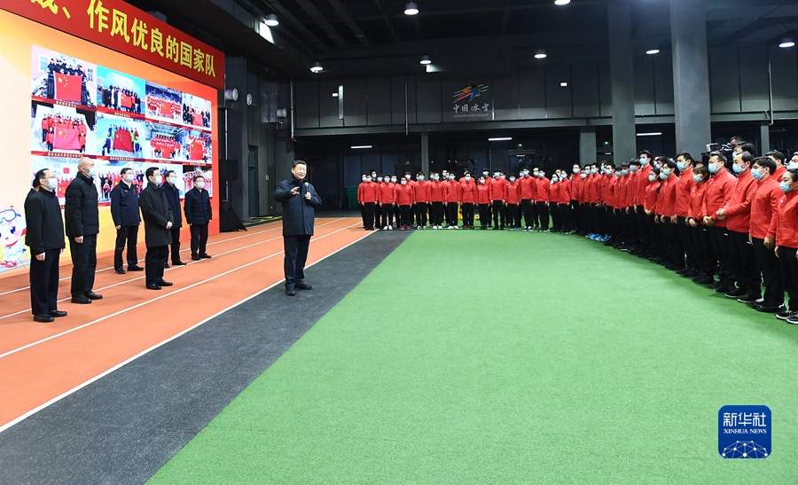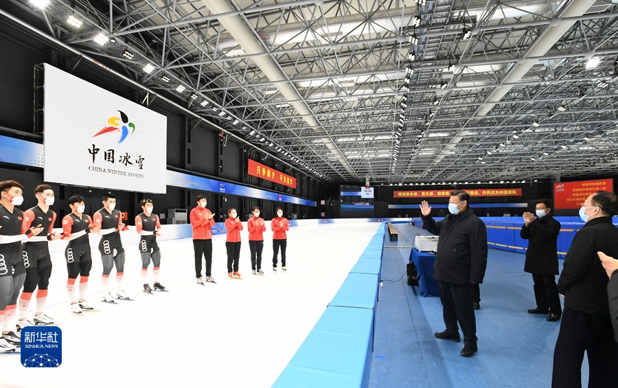 1月4日,中共中央總書(shū)記、國(guó)家主席、中央軍委主席習(xí)近平在北京考察2022年冬奧會(huì)、冬殘奧會(huì)籌辦備賽工作。這是4日下午,習(xí)近平在二七廠(chǎng)冰雪項(xiàng)目訓(xùn)練基地速滑館,向參訓(xùn)運(yùn)動(dòng)員、教練員表示慰問(wèn)。新華社記者 謝環(huán)馳 攝