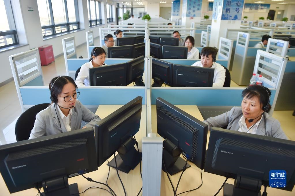 在位于北京亦莊的12345市民熱線(xiàn)話(huà)務(wù)大廳,工作人員接聽(tīng)熱線(xiàn)電話(huà)(2019年11月13日攝)。新華社記者彭子洋攝