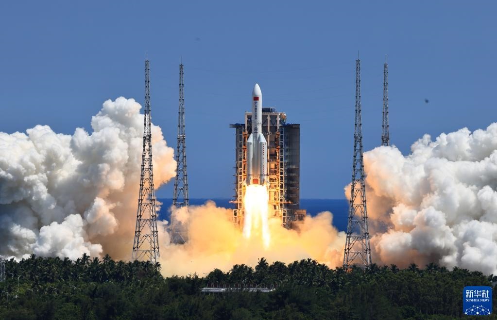 2022年7月24日,搭載問天實(shí)驗(yàn)艙的長征五號(hào)B遙三運(yùn)載火箭,在我國文昌航天發(fā)射場點(diǎn)火發(fā)射。新華社記者李剛攝