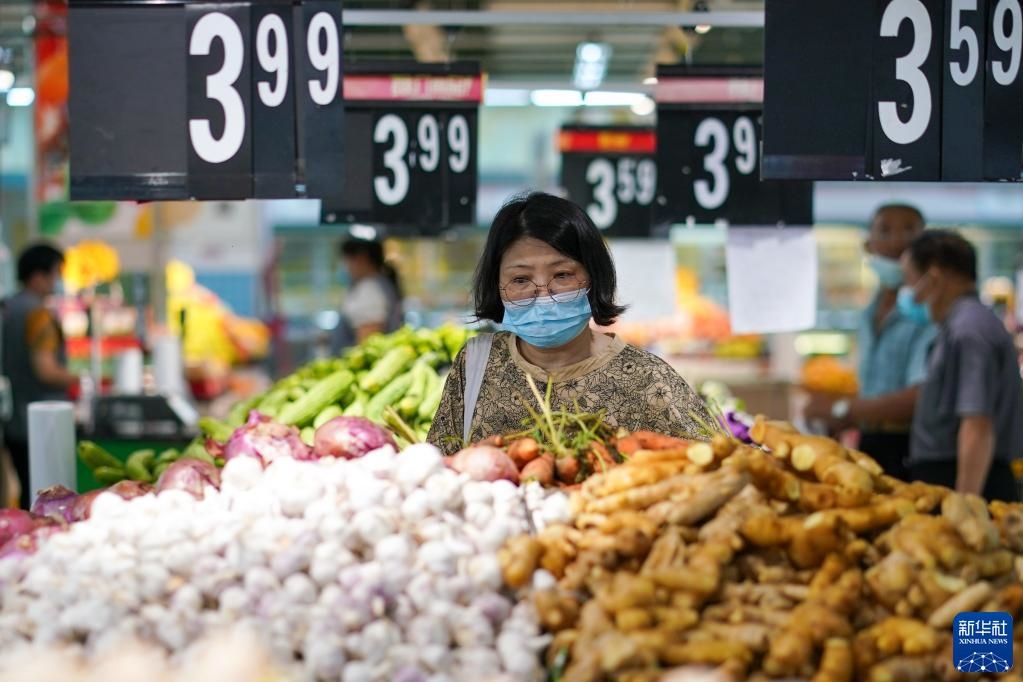 市民在江蘇省無錫市經(jīng)開區(qū)華潤萬家超市購物(2022年7月7日攝)。江蘇省無錫市在做好疫情防控的同時(shí),積極制定相關(guān)方案,制作城市保供地圖,組織大型商超、市場正常運(yùn)營,全力保供穩(wěn)價(jià),端穩(wěn)市民“菜籃子”。新華社記者李博攝
