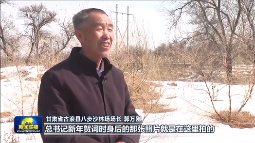 甘肅省古浪縣八步沙林場(chǎng)場(chǎng)長(zhǎng) 郭萬(wàn)剛:總書(shū)記新年賀詞時(shí)身后的那張照片就是在這里拍的,他叮囑我們要把身體保護(hù)好才能把沙治好,把日子過(guò)好,治沙就是為了更好的生活。