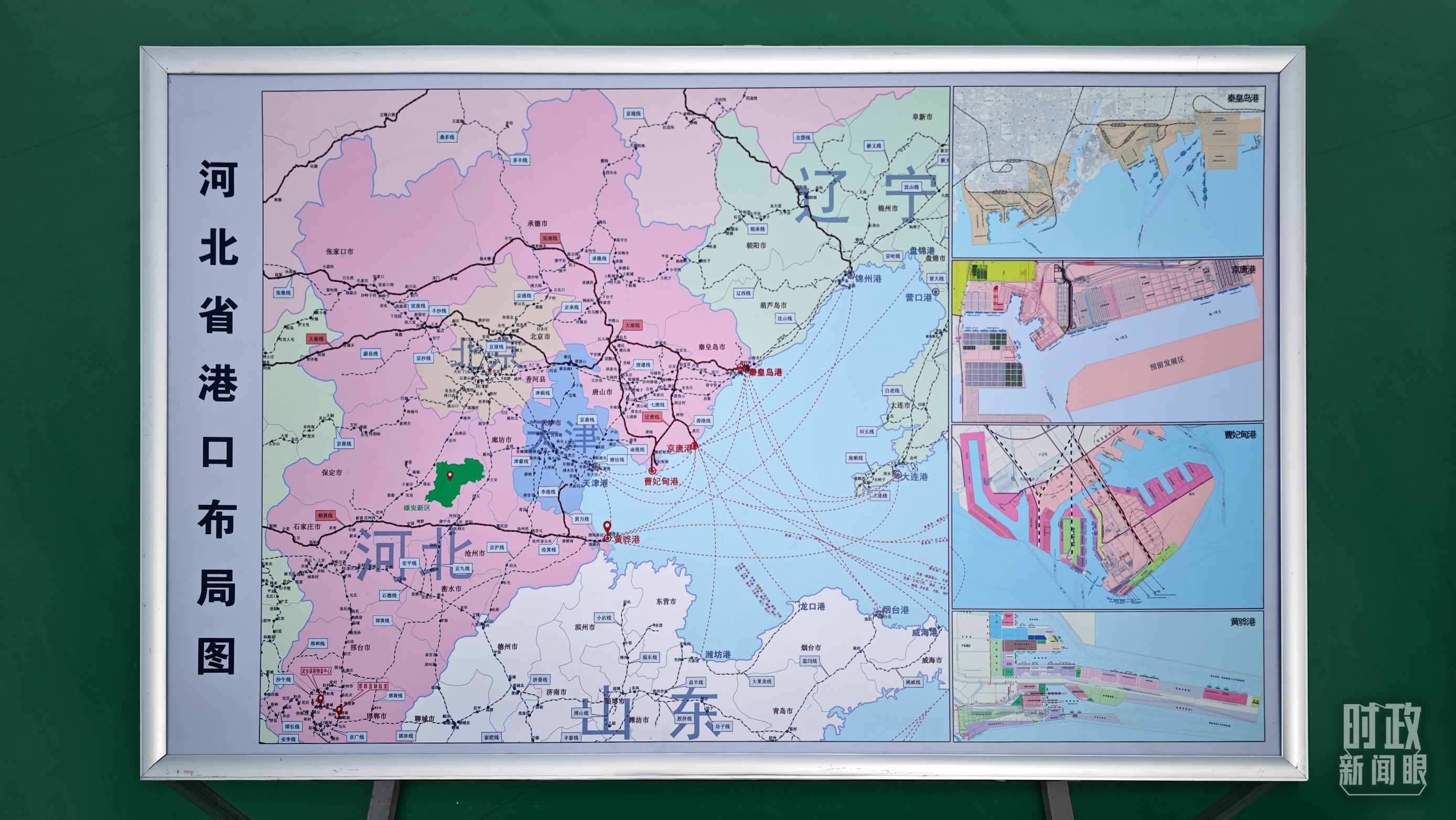 △河北省港口布局圖展示。(總臺(tái)央視記者彭漢明拍攝)