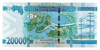 △在幾內(nèi)亞央行發(fā)行的該國(guó)最大面值兩萬(wàn)幾郎紙幣上,印著中國(guó)長(zhǎng)江三峽集團(tuán)有限公司總承建的凱樂(lè)塔水電站。