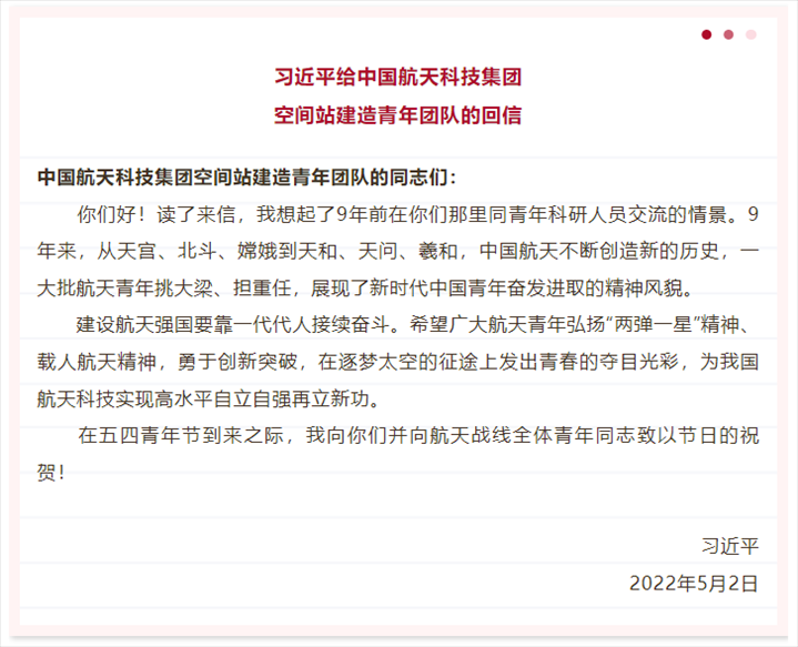 衛(wèi)星發(fā)射前,科普小衛(wèi)星研制團隊的學(xué)生們給習(xí)近平總書記寫信,報告了小衛(wèi)星即將發(fā)射的消息。總書記在回信中希望孩子們“保持對知識的渴望,保持對探索的興趣,培育科學(xué)精神,刻苦學(xué)習(xí),努力實踐”。