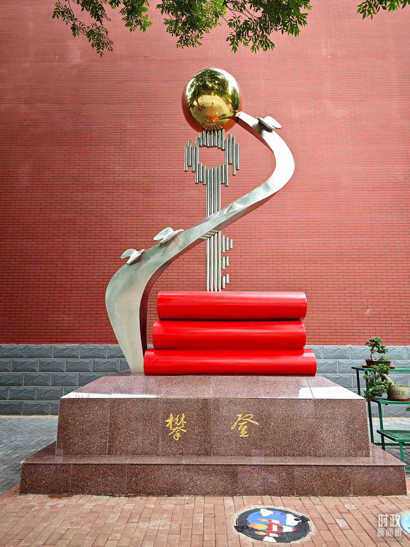 △北京育英學校內(nèi)的“攀登”雕塑。(總臺央視記者彭漢明拍攝)
