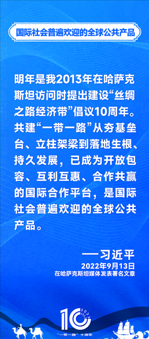 10年前,習(xí)近平主席提出共建“絲綢之路經(jīng)濟(jì)帶”和“21世紀(jì)海上絲綢之路”,即共建“一帶一路”倡議。過(guò)去10年來(lái),習(xí)近平主席在多個(gè)場(chǎng)合發(fā)表講話和署名文章,為世界描繪了共建“一帶一路”互聯(lián)互通、合作共贏的宏偉藍(lán)圖。