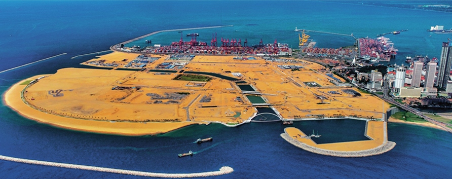 斯里蘭卡科倫坡港口城全景(2021 年 12 月 2 日攝) 科倫坡港口城項(xiàng)目公司供圖
