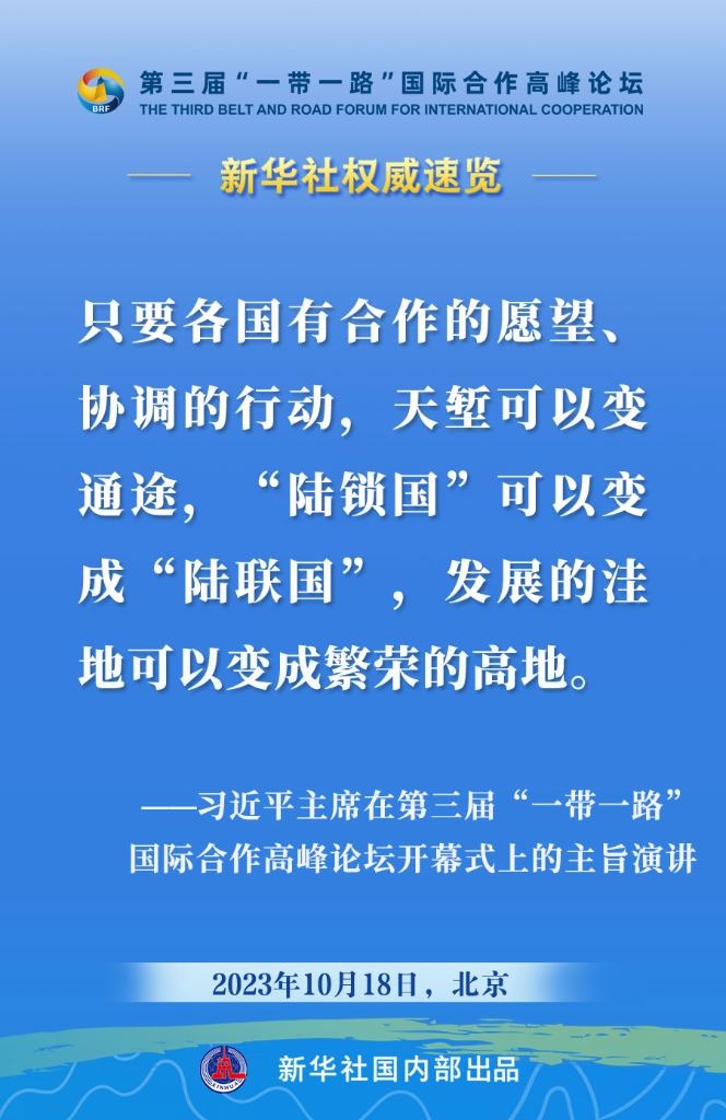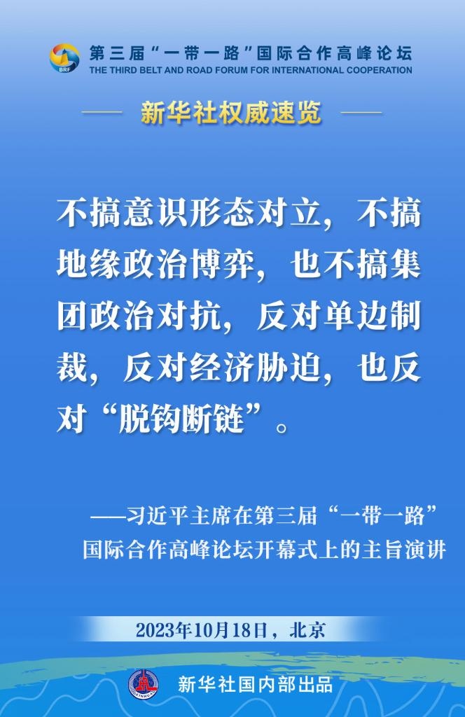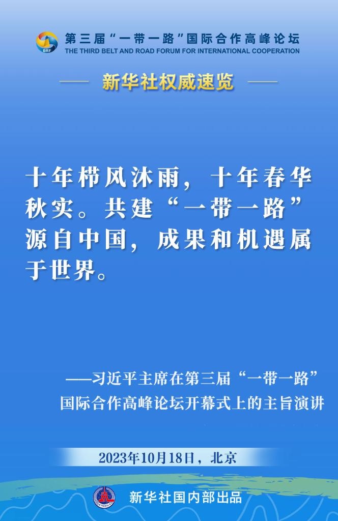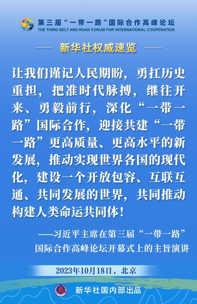 10月18日,國家主席習近平在第三屆“一帶一路”國際合作高峰論壇開幕式上發(fā)表主旨演講。一起來看金句?! ?/p>