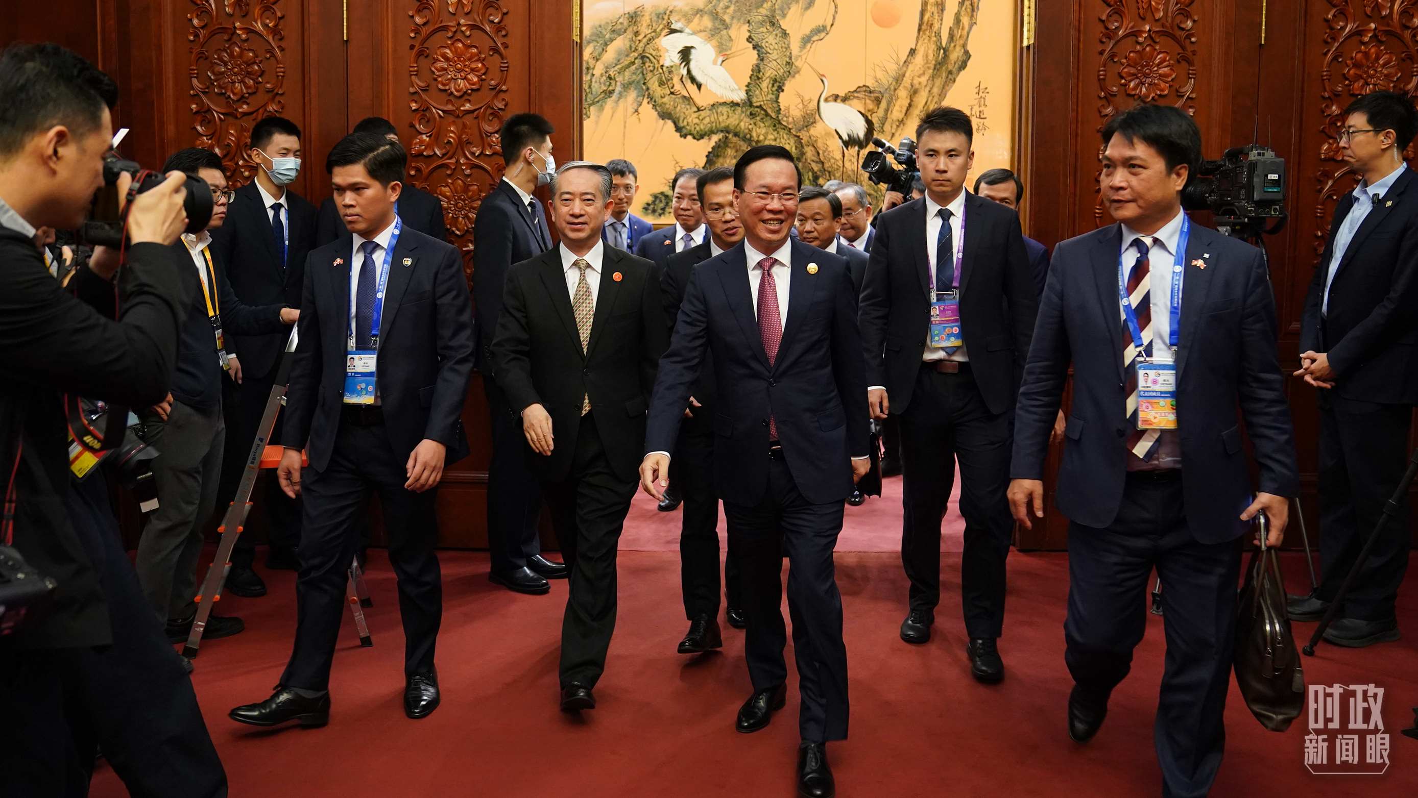 △越南國(guó)家主席武文賞走出會(huì)見(jiàn)廳。(總臺(tái)國(guó)廣記者李晉拍攝)